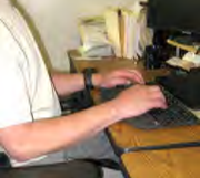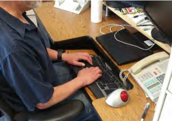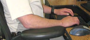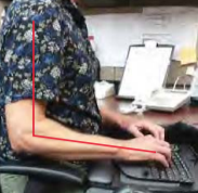 • 放置鍵盤的平台需低於工作桌面,鍵盤上的home row鍵位置在手肘的高度或稍微低於手肘。