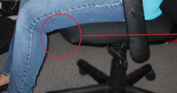 • 當屁股往後坐到靠近椅背、背部靠著椅背時,膝蓋後方需與坐墊前緣保持5至10公分的距離。