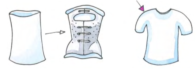 在背架裡面可以穿上無側邊縫線的短袖棉質T恤或棉質汗衫,或者必要時將衣服反穿,將任何縫線露在外側,避免刺激皮膚。